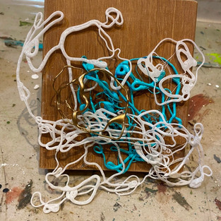 I discovered a new process for myself - sculpture painting. Of course, nothing new in general - after my inspiration passed, I found many artists on the Internet creating works based on hot glue.