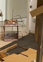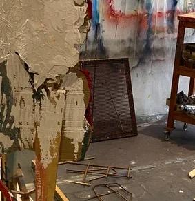 I had never heard of this artist before. And what attracted me immediately to his work was his exploration of society and urban space during the civil war. The artist used ordinary ways of creating paintings and drawings until he began to depict concrete. He wondered why to paint concrete structures with acrylics when one could just use concrete. So the artist found one of his materials that is closely related to the object of his research.