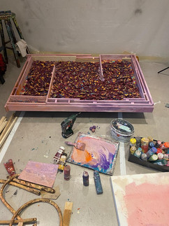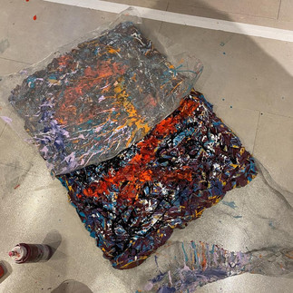 So, I have long wanted to try Pollock's technique on the uneven surface of my works.