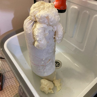 I put the clay balls together with the plaster of Paris into a bag and turned it over so that they were on top.