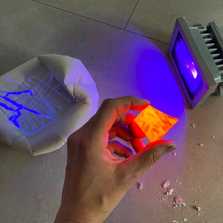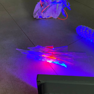 Then I just combined the elements. I played with light and ultraviolet light. Tried what I can do with a hot glue gun. I painted a glass, gypsum, plastic and metal.