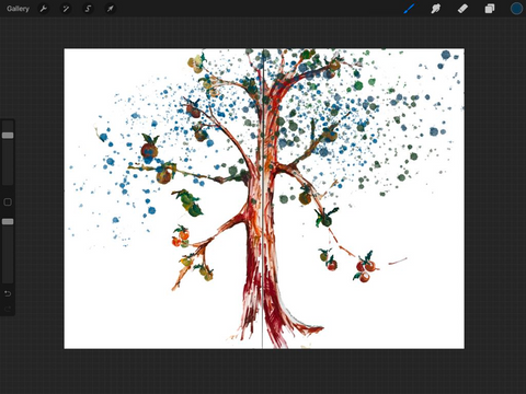Background selection, foliage solutions, apples - everything turned out gradually as tests were taken. One of the sketches turned out to be successful with a white background, but it was necessary to make it more difficult and develop the theme with the tree further.