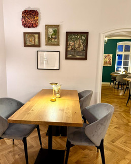 Curating this exhibition has revealed itself to be less of a rigid, pre-planned process and more of a creative evolution. Unlike meticulously planned curatorial projects, this exhibition is unfolding organically, influenced by the restaurant space, the owners, and ongoing decisions. Each step, from the placement of works to the development of supporting elements like the menu, has sparked new ideas and directions.
