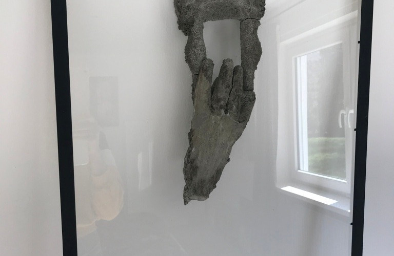 I see what I can't see, 2020, cement, glass, frame, glue, L 53.5 x H 73.5 x W 4 cm.