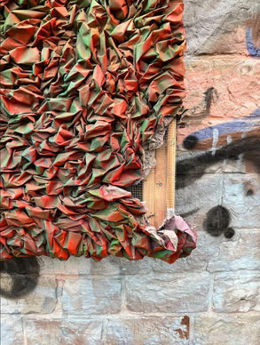 "Temporary Permanence" is more than an installation—it's a dialogue with time, space, and memory. Drawing from the work of influential artists like El Anatsui, Christo and Jeanne-Claude, Richard Serra, and Katharina Grosse, this piece engages with the architectural and historical narrative of the Baumwollspinnerei in Sankt Ingbert, Saarland in Germany. These artists, known for their transformative use of materials and space, have inspired this installation to challenge your perception of permanence in both art and architecture.